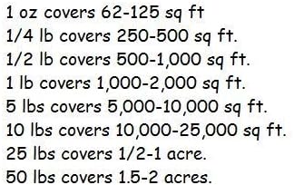 - 1 Pound Sack Up to 20,000 Sq. Ft; 5 Pound Sack Up to 2 Acres.