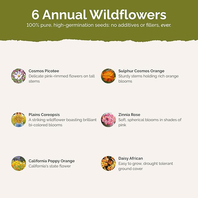 - 100% Pure, Non-GMO Seeds - No fillers, favorites only! Includes 5 easy-to-grow species: Cosmos Picotee, Cosmos Bright Lights, Plains Coreopsis, Zinnia Rose and more