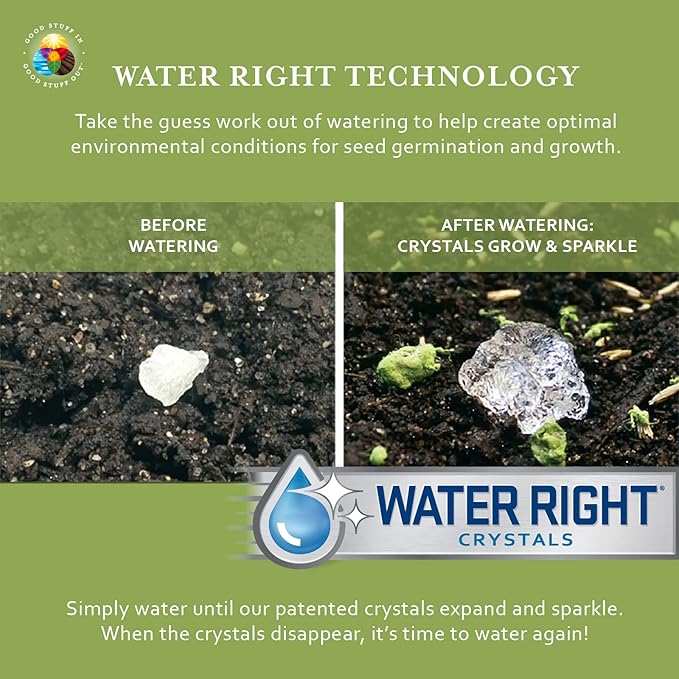 - The Right Amount of Water at the Right Time When it comes to growing plants, the right amount of moisture makes all the difference. Our patented Water Right Crystals provide an ideal guide for when and how much to water. Simply water until the crystals expand and sparkle. When the crystals disappear, it’s time to water again!